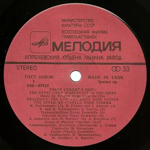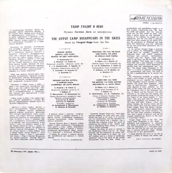 | Názov | Music By Yevgeni Doga From The Film "The Gypsy Camp Disappears In The Skies" |