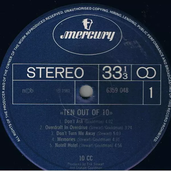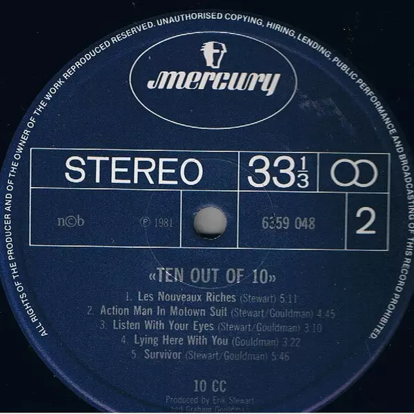 10cc: Ten Out Of 10 verzia na vinylu LP v štandardný edícii. Toto konkrétne vydanie vyšlo v Skandinávie vo vydavateľstve Mercury v spolupráci s Phonogram roka 1981. Album zasahuje do žánrov Rock, Reggae, Pop Rock a Reggae-Pop.