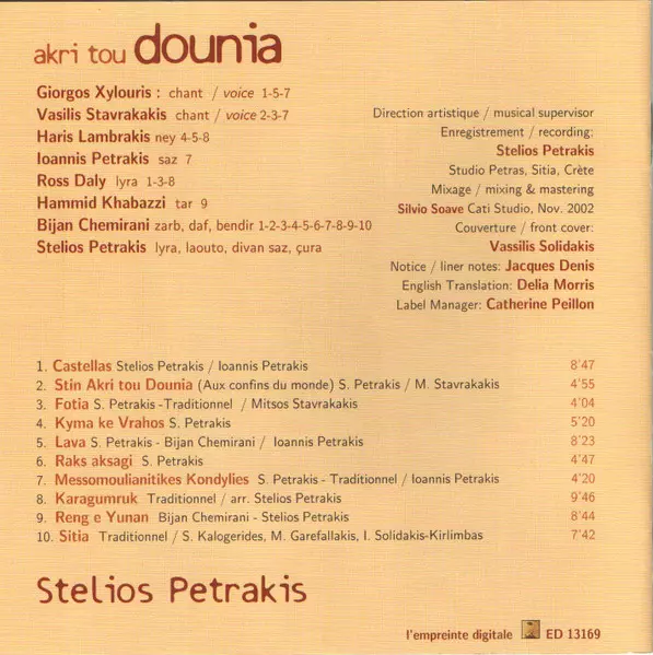 | Interpret | Bijan Chemirani | Stelios Petrakis | Ross Daly | Βασίλης Σταυρακάκης | Γιώργος Ξυλούρης |