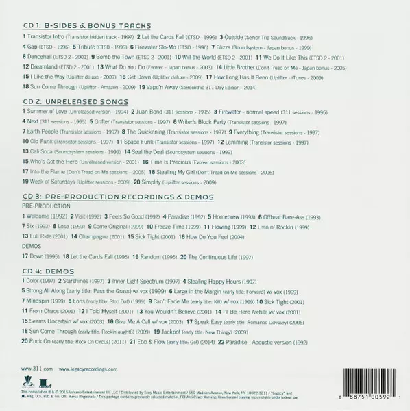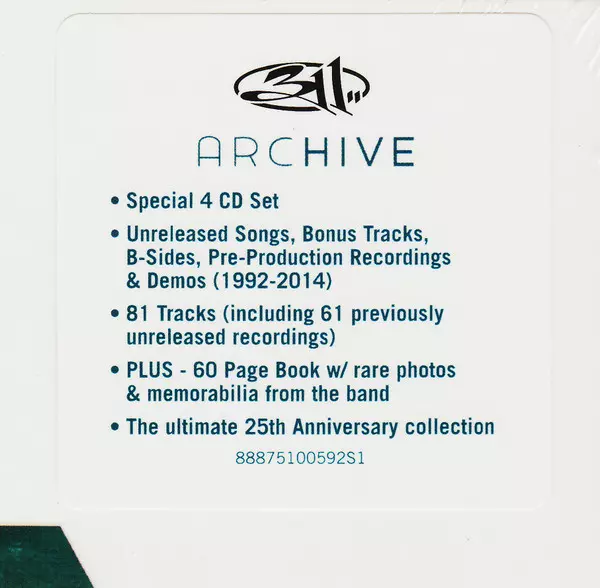 311: Archive verzia na 4CD/Box Set v remasterované edícii. Toto konkrétne vydanie vyšlo v USA vo vydavateľstve Volcano (2) v spolupráci s Legacy dňa 30. júna 2015. Album zasahuje do žánrov Rock, Reggae, Hip Hop, Alternatívny rock, Funk Metal, Pop Rap a Stoner rock.