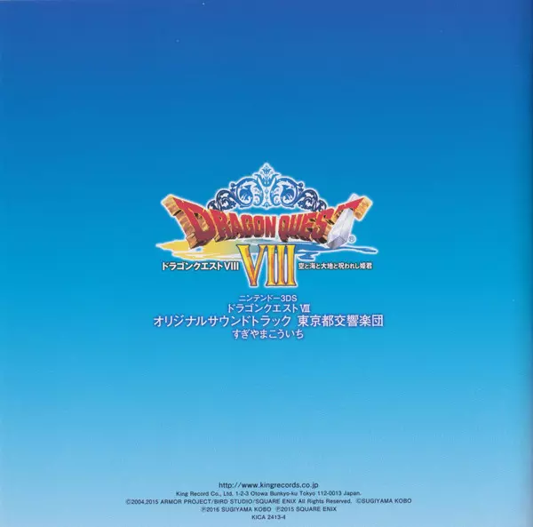 | Názov | ニンテンドー3DS ドラゴンクエストVIII 空と海と大地と呪われし姫君 オリジナル・サウンドトラック = Nintendo 3DS Dragon Quest VIII |