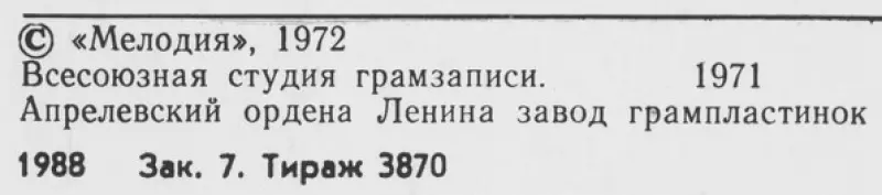 | Vydavateľstvo | Мелодия |