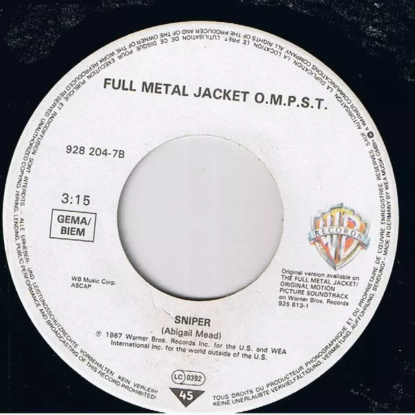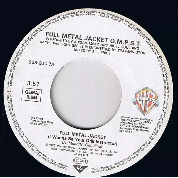 | A | Abigail Mead, Nigel Goulding: Full Metal Jacket (I Wanna Be Your Drill Instructor) | 3:57 min | |