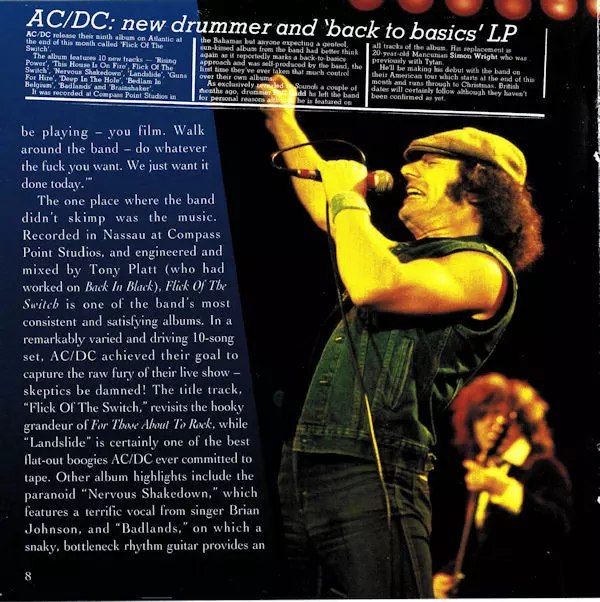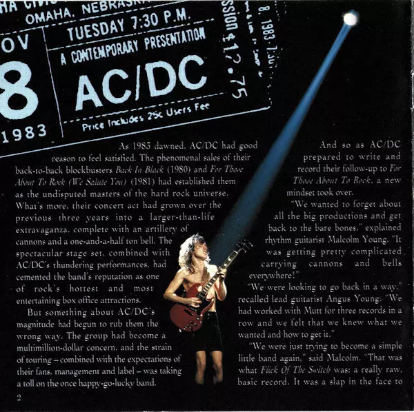 Málokto veril, že po smrti speváka Bona Scotta v roku 1980 sa AC/DC z tohto šoku spamätá. Nový spevák Brian Johnson sa však osvedčil a v roku 1983 sa austrálska skupina vrátila do starej formy albumom "Flick Of The Switch". To, čo z reproduktorov vyšlo, bolo surovejšie a bezchybnejšie než takmer všetky ostatné dlhohrajúce albumy kapely....