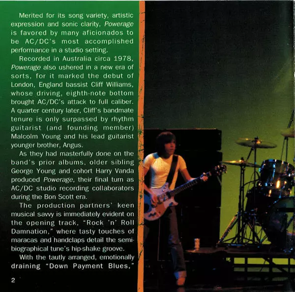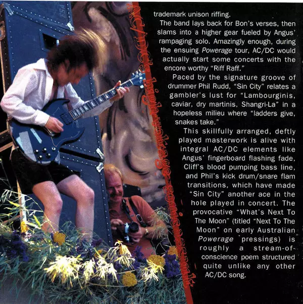 V roku 1978 predstavili AC/DC svoj hitový album "Powerage" s poctivými a pevnými riffmi. Kvarteto, ktoré stále viedol krikľúň Bon Scott, chrlilo na publikum rockové klasiky ako "Riff Raff", "Rock'n'Roll Damnation" a "Down Payment Blues". Z reproduktorov to vybuchuje tak dobre, až sa človek čuduje, prečo vlastne existujú nejaké iné rockové kapely...