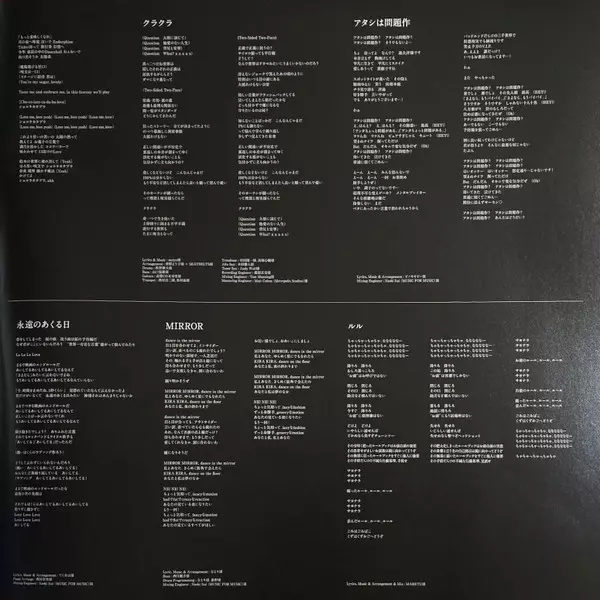 Bass Keisuke Torigoe | Drums Atsushi Matsushita | Guitar Yukio Nagoshi | Keyboards Ichiyo Izawa | MIDI Controller Karada Sagashi | Music By, Arranged By Shiina Ringo | Recorded By, Mixed By Uni Inoue