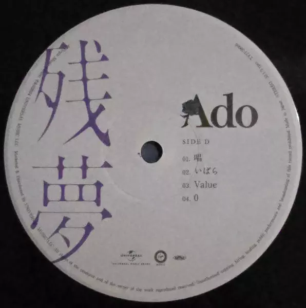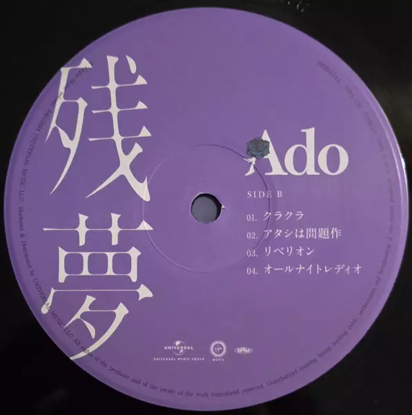 Ado: 残夢 LTD verzia na vinylu 2LP v limitované edícii. Toto konkrétne vydanie vyšlo v Japonsku vo vydavateľstve Virgin Music v spolupráci s Universal Music Group dňa 13. decembra 2024. Album zasahuje do žánrov Pop, Stage & Screen, J-pop a Anison.