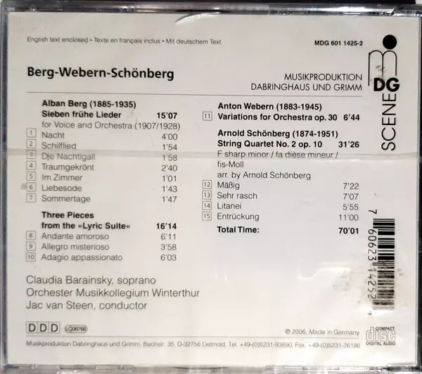 | Interpret | Arnold Schoenberg | Alban Berg | Anton Webern | Jac van Steen | Musikkollegium Winterthur |