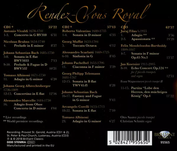 | Interpret | Antonio Vivaldi | Johann Sebastian Bach | Tomaso Albinoni | Johann Pachelbel | Alessandro Scarlatti | Arcangelo Corelli | Alessandro Marcello | Georg Muffat | Christian Schmitt | Telemann Society Orchestra | Otto Sauter |