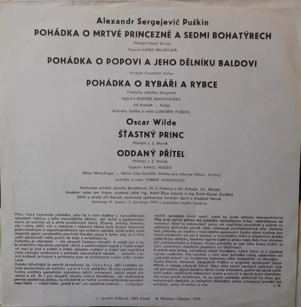| Názov | Pohádka O Mrtvé Princezně A Sedmi Bohatýrech / Pohádka O Rybáři A Rybce / Pohádka O Popovi A Jeho Dělníku Baldovi / Štastný Princ / Oddaný Přítel |