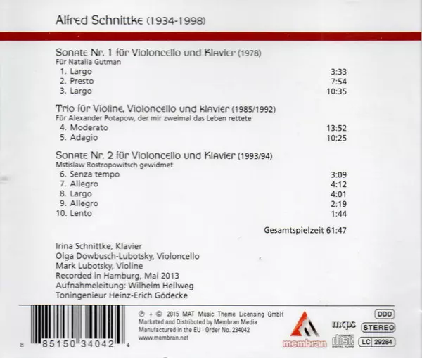 | Interpret | Alfred Schnittke | Mark Lubotsky | Irina Schnittke | Olga Dowbusch-Lubotsky |