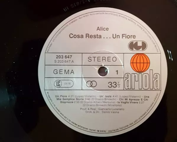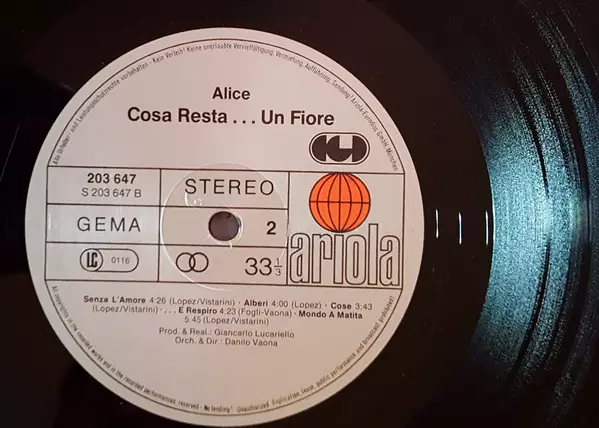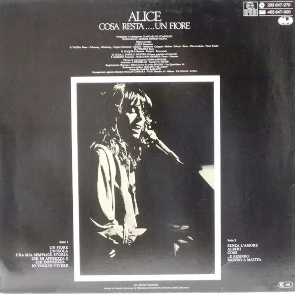 Alice: Cosa Resta....Un Fiore verzia na vinylu LP v štandardný edícii. Toto konkrétne vydanie vyšlo v Německu vo vydavateľstve Ariola v spolupráci s CGD roka 1978. Album zasahuje do žánrov Pop, Progressive Pop a Italo Pop.