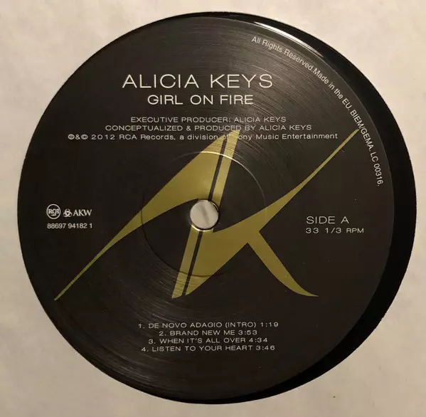 Alicia Keys: Girl On Fire verzia na vinylu 2LP v štandardný edícii. Toto konkrétne vydanie vyšlo v Evropě vo vydavateľstve RCA v spolupráci s AKW dňa 18. decembra 2012. Album zasahuje do žánrov Jazz, Funk / Soul a Contemporary R&B.