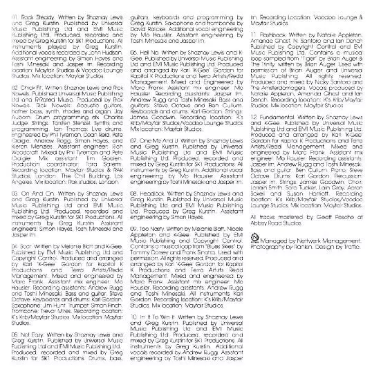 Bass, Guitar Ben Cullum, Steve Octave | Keyboards, Drums Karl "K-Gee" Gordon | Mixed By [Assistant Mix Engineer] Mo Hausler | Mixed By, Engineer Mark Frank | Producer, Arranged By Karl "K-Gee" Gordon | Recorded By [Recording Assistant] Andrew Rugg, Jasper Irn, Toshi Minesaki | Strings James Goodwin (3) | Written-By Karl "K-Gee" Gordon, Shaznay Lewis