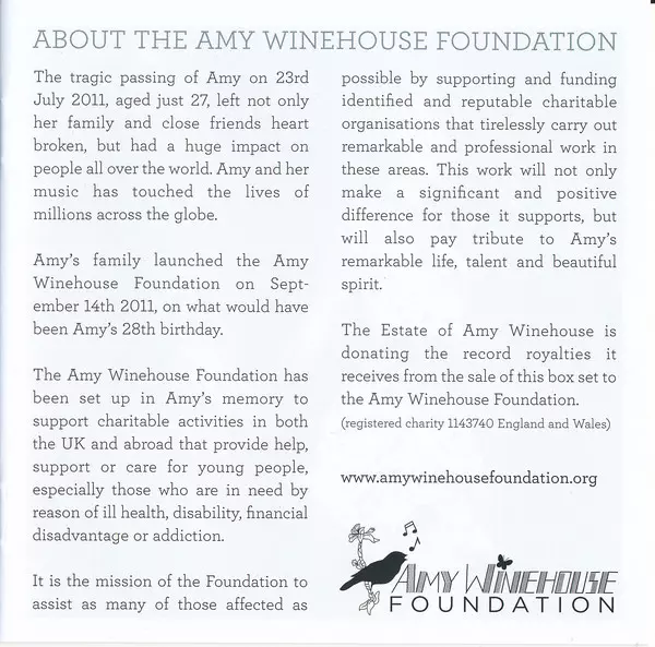 The late British singer Amy Winehouse is releasing a new box set, Amy Winehouse at the BBC, with proceeds going to the Amy Winehouse Foundation, which her family founded. This CD + DVD is its smaller, edition. featuring a selection of live tracks from various performances for the BBC.