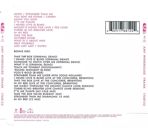 Amy Winehouse: Frank DLX verzia na 2CD v deluxe edícii. Toto konkrétne vydanie vyšlo v Evropě vo vydavateľstve Island Records v spolupráci s Island Records Group a Universal UMC dňa 27. mája 2008.