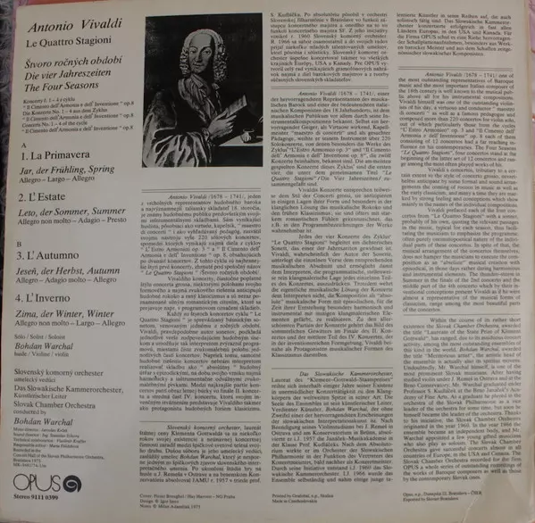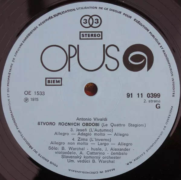 | Viac informácií | 1976 Original pressing (Opus, Czechoslovakia) |