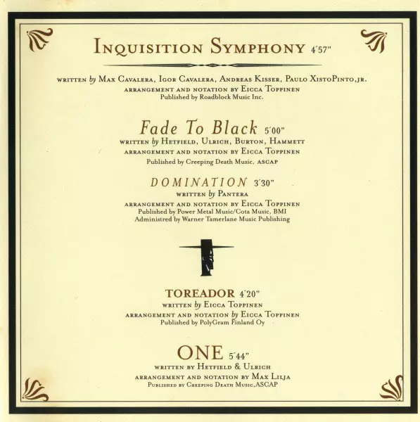 V roce 1993 se metalový svět dozvěděl o slibném projektu "Apocalyptica Plays Metallica By Four Cellos". Trvale pozitivní reakce ještě více svařily Apocalypticu a z finského kvarteta se stala kapela, která v únoru 1998 konečně nahrála dlouho očekávané pokračování svého debutu, "Inquisition Symphony". S druhým albem udělala Apocalyptica skok kupř...