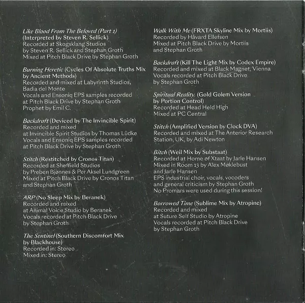 Mixed By Alex Møklebust, Jarle Hansen | Recorded By Jarle Hansen | Remix Substaat | Sampler [EPS Industrial Choir], Vocals, Vocoder [Vocoders], Other [General Criticism] Stephan Groth