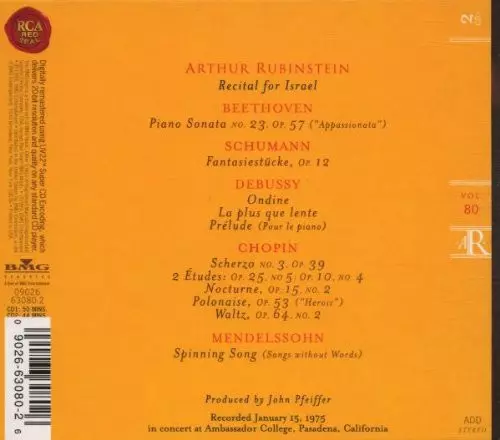 | Interpret | Ludwig van Beethoven | Frédéric Chopin | Claude Debussy | Robert Schumann | Arthur Rubinstein |