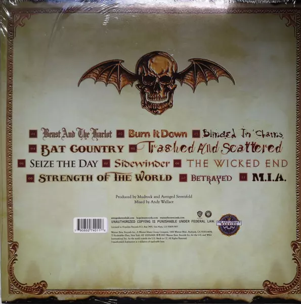 Avenged Sevenfold "City of Evil" is an album released in 2005. It contains some of the band's most popular songs, such as "Bat Country", "Beast and the Harlot" and "Seize the Day". The album was commercially successful and helped cement the band's position as one of the biggest metal bands in the world.