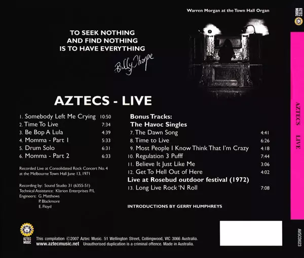| Viac informácií | Expanded Remastered 2012 Aztec Music Reissue |