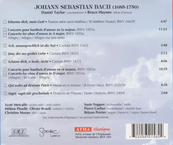 | Interpret | Johann Sebastian Bach | Daniel Taylor | Bruce Haynes |