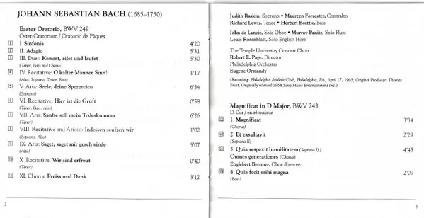 | Interpret | Johann Sebastian Bach | Leonard Bernstein | The Philadelphia Orchestra | Eugene Ormandy | New York Philharmonic |