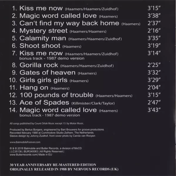 | Viac informácií | Remastered Butler Records (Europe) — Expanded tracklist |
