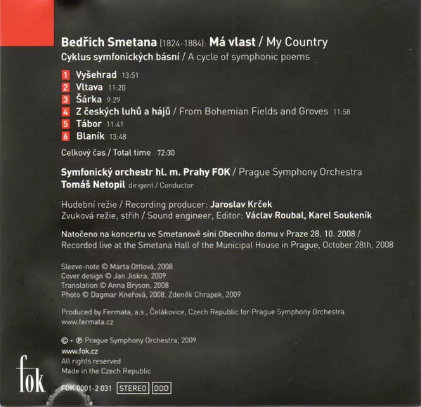 | Interpret | Bedřich Smetana | The Prague Symphony Orchestra | Tomáš Netopil |