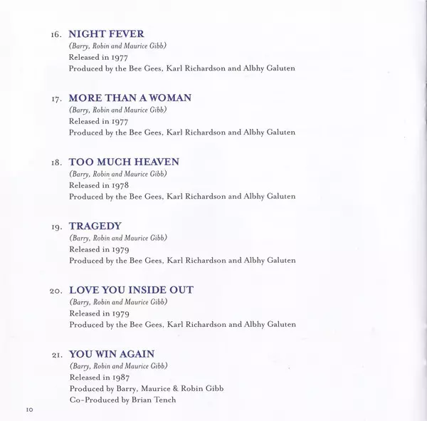 "This record is imbued with spirituality and these songs have always meant the most to us," says Barry Gibb in his written introduction to Timeless: The All-Time Greatest Hits package. "While there are many other songs, I feel these songs are the ones that would make Maurice, Robin and I most proud."