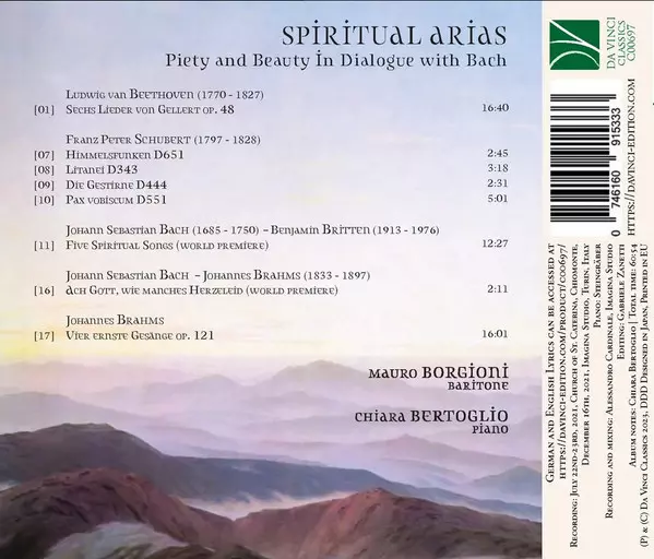 | Interpret | Johann Sebastian Bach | Ludwig van Beethoven | Johannes Brahms | Franz Schubert | Benjamin Britten | Chiara Bertoglio | Mauro Borgioni |