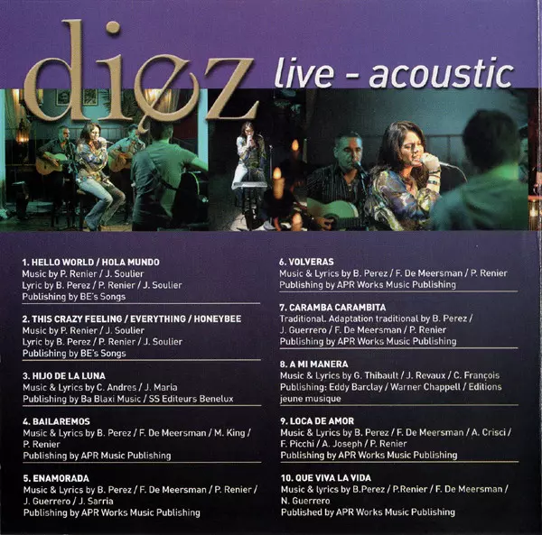 Belle Perez: Diez - Live-Acoustic verzia na CD/DVD v štandardný edícii. Toto konkrétne vydanie vyšlo v Evropě vo vydavateľstve APR Works Records dňa 13. marca 2009. Album možno zaradiť do žánru Latinská hudba.