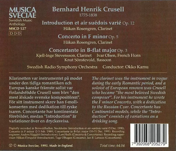 | Interpret | Sveriges Radios Symfoniorkester | Bernhard Henrik Crusell | Okko Kamu | Håkan Rosengren |