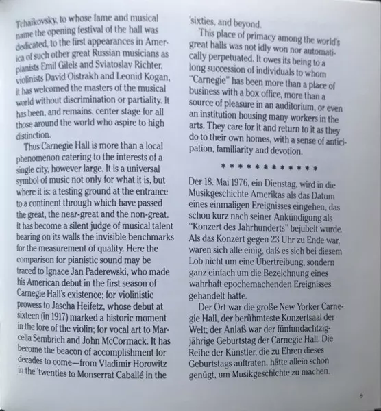 | Interpret | Leonard Bernstein | Mstislav Rostropovich | Dietrich Fischer-Dieskau | Isaac Stern | Vladimir Horowitz | Yehudi Menuhin | The Oratorio Society Of New York | Members Of The New York Philharmonic |
