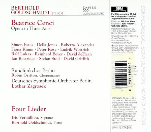 | Interpret | Della Jones | Rundfunkchor Berlin | Deutsches Symphonie-Orchester Berlin | Lothar Zagrosek | Berthold Goldschmidt | Simon Estes | Roberta Alexander |