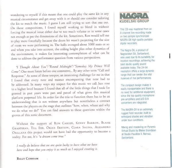 | Interpret | Billy Cobham | Ron Carter | Kenny Barron |