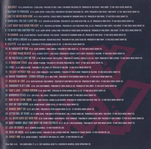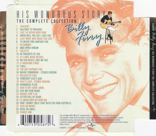Billy Fury: His Wondrous Story: The Complete Collection verzia na CD v štandardný edícii. Toto konkrétne vydanie vyšlo v Velké Británii vo vydavateľstve Universal Music TV dňa 28. januára 2008. Album zasahuje do žánrov Rock a Rock & Roll. Super Jewel Box.