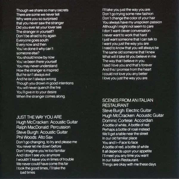 With the 1977 album "The Stranger", Billy Joel had his long-awaited breakthrough. The album was produced by Phil Ramone, who had worked with Simon & Garfunkel among others, and helped Joel turn his already accomplished arrangements and heartfelt lyrics into real hits. None of his previous ballads hit the heart like "Just The Way You Are", which ...