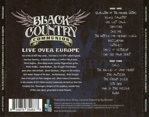 Black Country Communion: Live Over Europe verzia na 2CD v štandardný edícii. Toto konkrétne vydanie vyšlo v USA vo vydavateľstve J&R Adventures dňa 28. februára 2012.