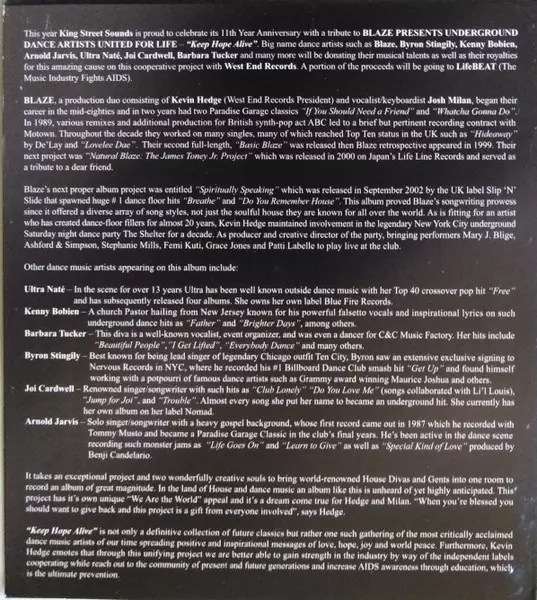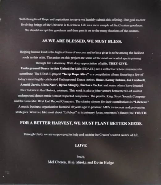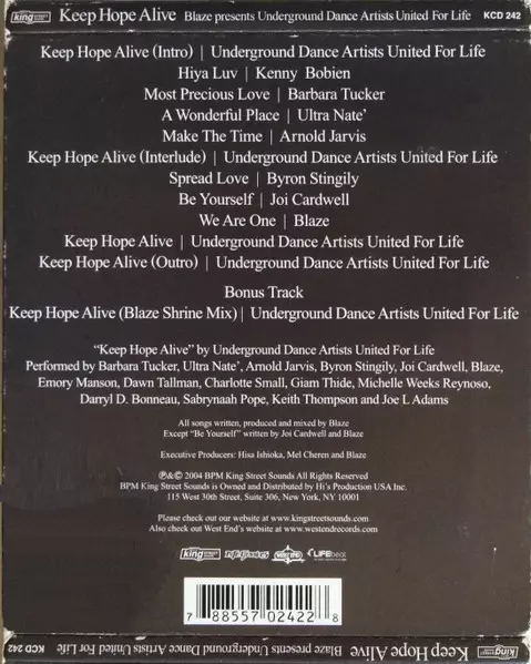 | 1 | Underground Dance Artists United For Life: Keep Hope Alive (Intro) | 0:23 min | |