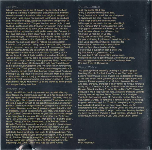 Blue: One Love verzia na CD v štandardný edícii. Toto konkrétne vydanie vyšlo v Evropě vo vydavateľstve Virgin v spolupráci s Innocent dňa 23. októbra 2015. Album zasahuje do žánrov Pop, Hip Hop, Balada, RnB/Swing a Europop.