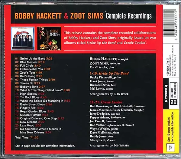 Zoot Sims: Complete Recordings verzia na CD v štandardný edícii. Toto konkrétne vydanie vyšlo v Evropě vo vydavateľstve Solar records dňa 6. júla 2015. Album zasahuje do žánrov Jazz, Big Band, Swing a Dixieland. 24 Bit.