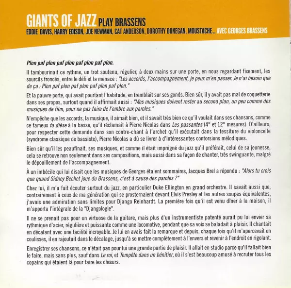 CD 1 Giants Of Jazz Play Brassens