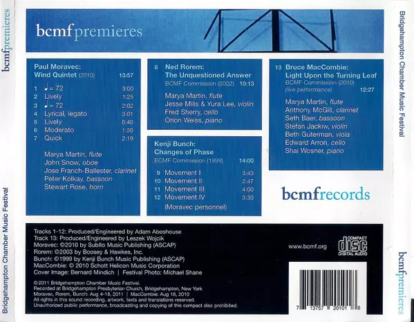 | Interpret | Ned Rorem | Bridgehampton Chamber Music Festival | Paul Moravec | Kenji Bunch | Marya Martin | Bruce MacCombie |