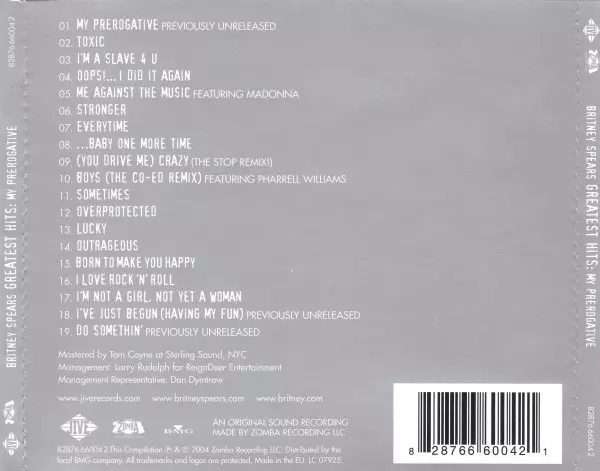 "My Prerogative: The Greatest Hits" je názov prvého albumu najväčších hitov Britney Spears, ktorý dokumentuje tvorivú fázu jej prvých štyroch albumov. Okrem ďalšej nevydanej piesne (Do somethin') album samozrejme obsahuje všetky mysliteľné hity dvadsaťdvaročnej popovej ikony: nechýbajú aktuálne piesne ako "Toxic" alebo "Everytime", ale ani klasiky Britney ako "Oops!... I did it again", "Baby one more time", "Lucky" alebo "Born to make you happy". Okrem celosvetovej slávy pomohli tieto piesne Britney predať 55 miliónov albumov. To je číslo, ktorým sa za svoju kariéru môže pochváliť len málo umelcov!