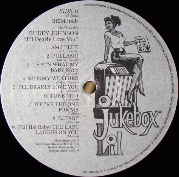 Buddy Johnson And His Orchestra: I'll Dearly Love You verzia na vinylu LP v štandardný edícii. Toto konkrétne vydanie vyšlo v Švédsku vo vydavateľstve Jukebox Lil dňa 25. decembra 1999. Album možno zaradiť do žánru Blues.