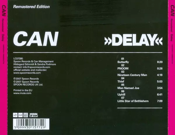 "Delay 1968" obsahuje první profesionální studiové nahrávky skupiny. Recenze "Can pak v roce 1981 vydali sedm skladeb z těchto nahrávek pod názvem Delay, výborně remasterovaných - v mnohem lepší zvukové kvalitě než bootlegy, které kolovaly dříve. V rámci série reedicí na barevných vinylech nyní Spoon Records vydává toto 'pravé' první album na rů...