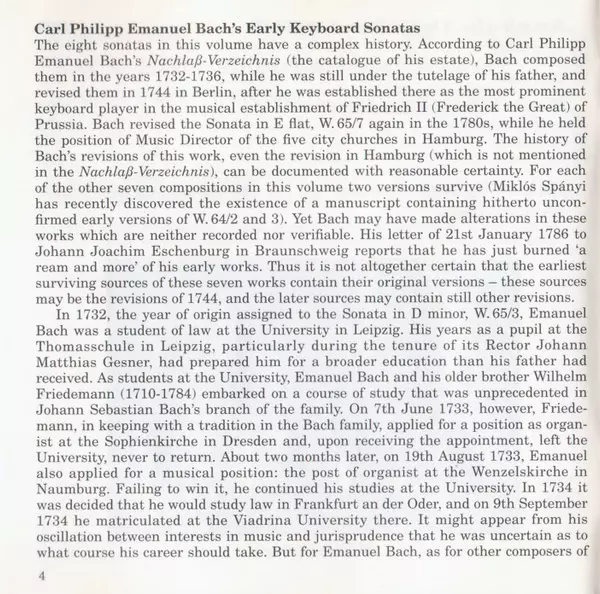 Carl Philipp Emanuel Bach bol plodný nemecký skladateľ, klávesista a jedna z najvýznamnejších postáv prechodu medzi obdobím baroka a klasicizmu v západnej hudbe. Narodil sa 8. marca 1714 vo Weimare a bol druhým žijúcim synom Johanna Sebastiana Bacha a Marie Barbary Bachovej. Jeho k...
