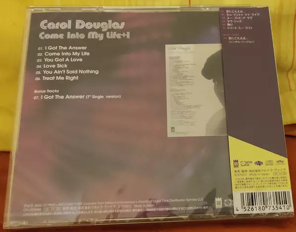 Carol Douglas: Come Into My Life verzia na CD v remasterované edícii. Toto konkrétne vydanie vyšlo v Japonsku vo vydavateľstve Octave Lab dňa 9. decembra 2021. Album zasahuje do žánrov Funk / Soul a Disco.